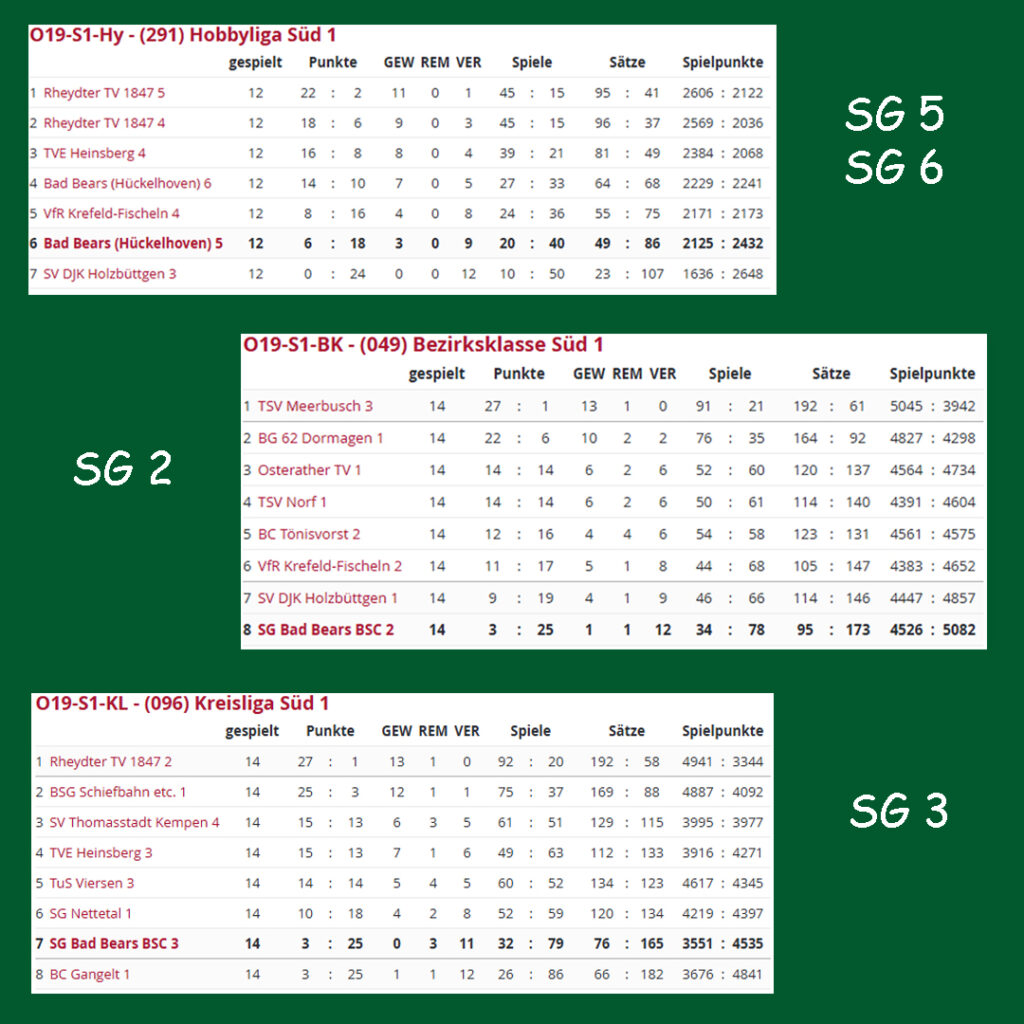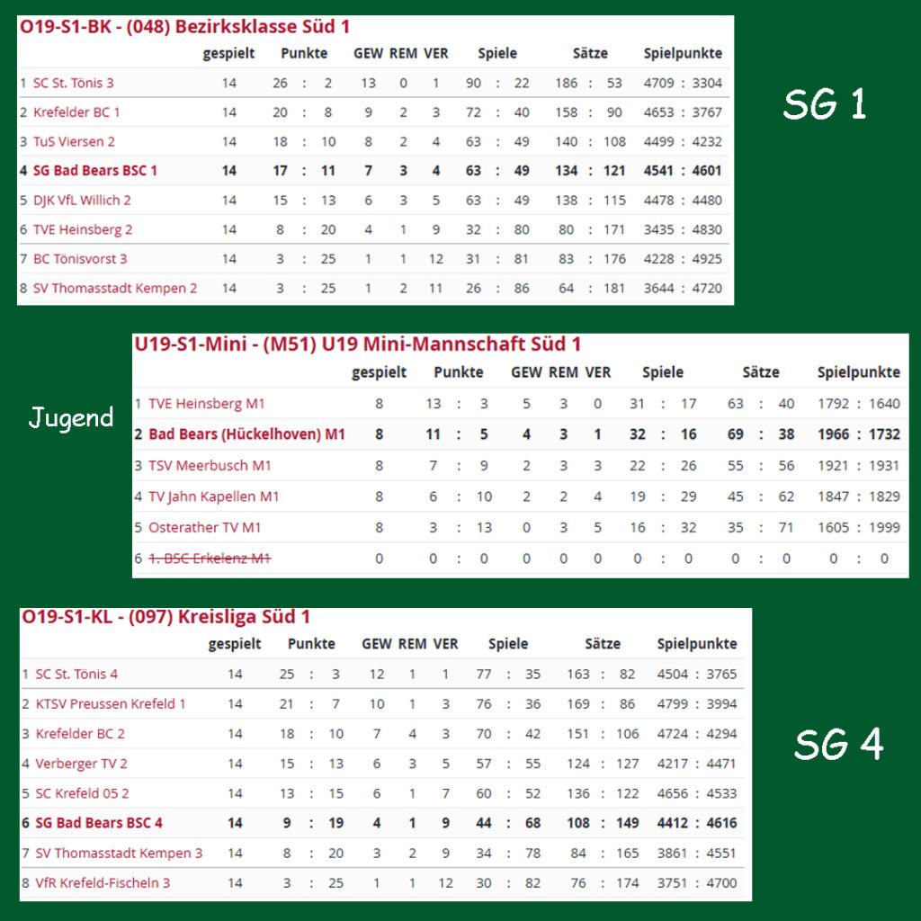 1. Mit dem Ende der Saison ist auch das Ende der Spielgemeinschaft mit dem 1. BSC Erkelenz gekommen. Beide Vereine gehen nach erfolgreicher Zusammenarbeit ihre eigenen Wege und blicken dankbar auf die gemeinsame Zeit zurück. Die SG-Spieler des BSC, die dienstagsabends weiterhin am Hobbytraining teilnehmen möchten, müssen dafür nun vollwertige Bad-Bears-Mitglieder werden.